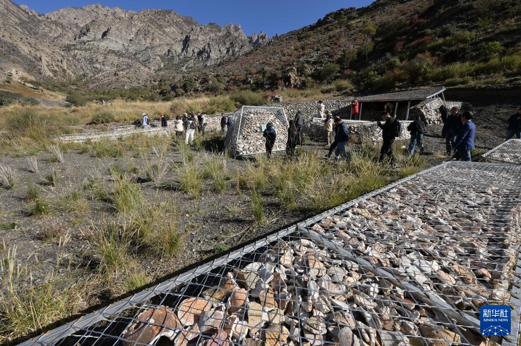 为更好维护和展现苏峪口瓷窑遗址,考古队工作人员运用牛毛毡和开掘出土的匣钵残片以及铁丝网将2021-2023年度开掘区遗址进行了回填维护并旧址展现(10月13日摄)。